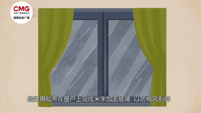 2. 检查并及时加固门窗、室外空调、太阳能热水器等室外搭建物。可在窗玻璃上用胶布贴“米”字形,以防窗玻璃破碎。